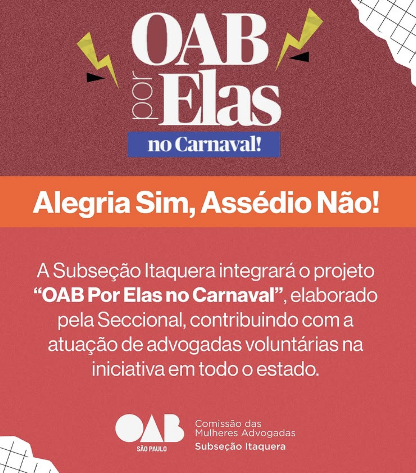 A Subseção OAB Itaquera integra a ação “OAB Por Elas no Carnaval”